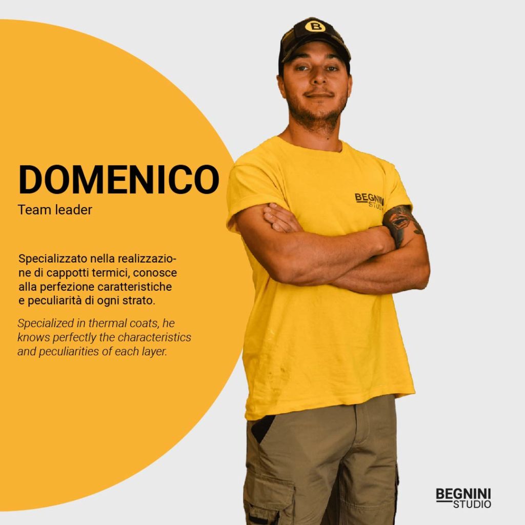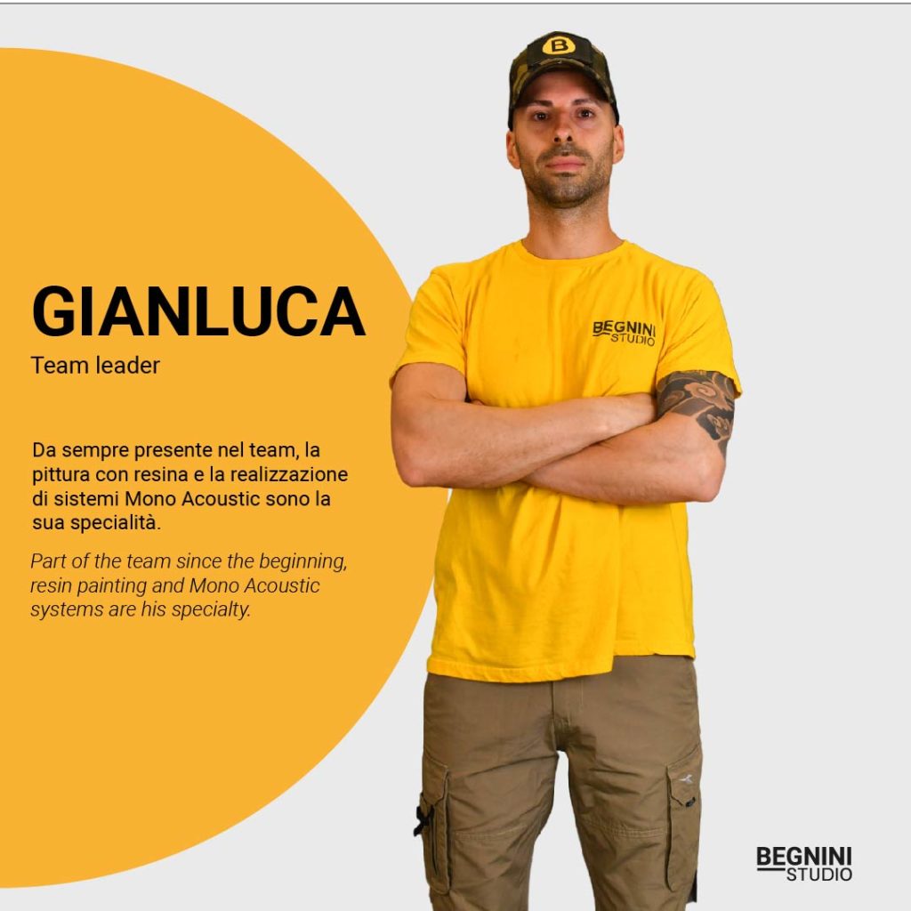 Da ben 11 anni si è unito al team di Begnini Studio, rappresentando così il collega più longevo del gruppo. Due sono le sue specialità: la pittura con resina e la realizzazione di sistemi Mono Acustic, di cui possiede la certificazione. Dalla preparazione all’applicazione, sa gestire alla perfezione ogni richiesta.
